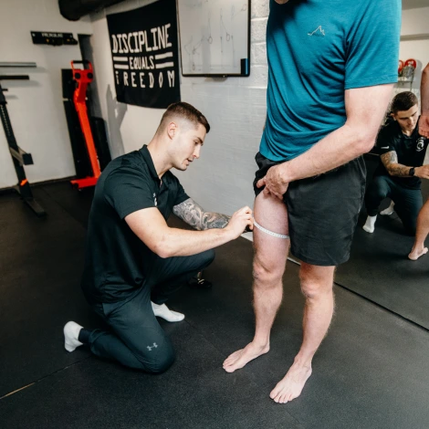 Daarna voeren we een 12-punts huidplooimeting en weging uit. Deze metingen helpen ons niet alleen om je lichaamssamenstelling te begrijpen, maar ook om je progressie objectief op te volgen. Op basis van deze resultaten stellen we een trainingsplan op dat volledig is afgestemd op jouw lichaam en doelen.